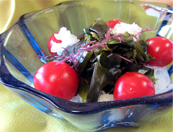 C器に水気を切った春雨、カットわかめ、白木耳、ミニトマト、お好みの海藻を盛り付けて完成。